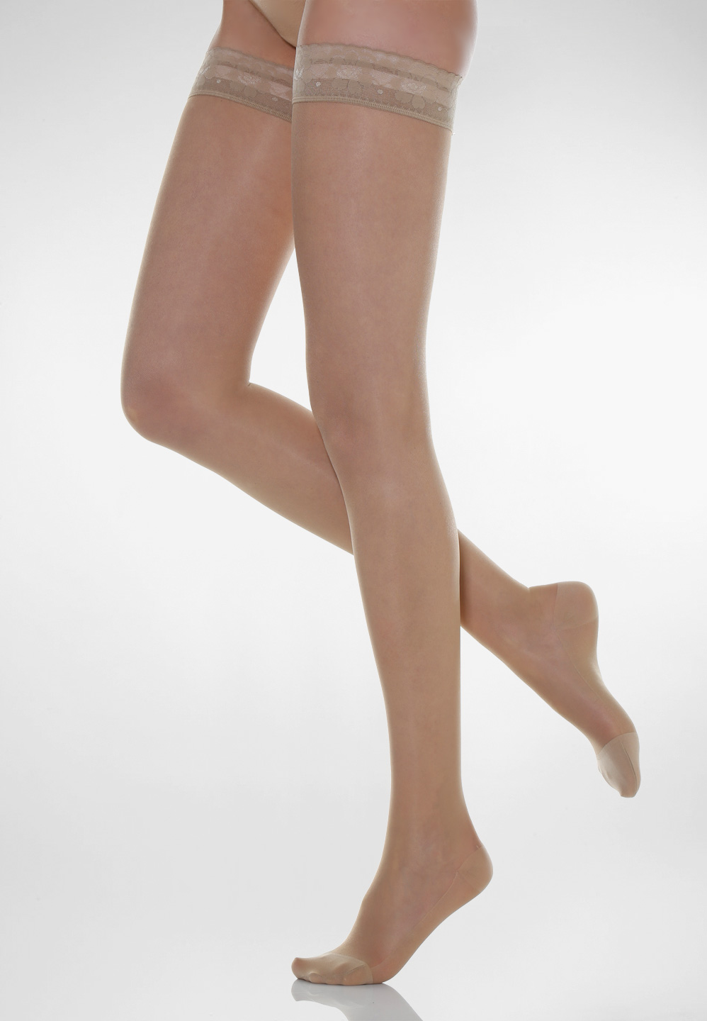 Línea clásica de medias elásticas de compresión graduada hechas con hilos elásticos de doble cobertura de alta calidad para garantizar comodidad y durabilidad. Talón reforzado y anatómico para un ajuste perfecto.